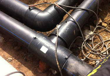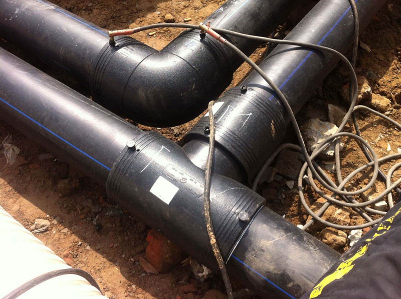 安裝工藝流程:備料—刮削氧化層—清潔焊接面—標記承插深度—檢測管件線圈—轉配管件—檢查配合—固定連接處—管件編號—焊接—冷卻—局部回填—試壓驗收—整體回填